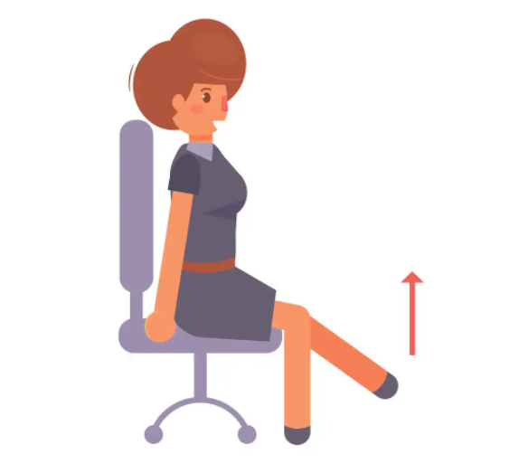 正确: 臀部向后坐满椅面,有意识地感受两块硬硬的坐骨结节均匀受压。这能自动引导骨盆处于中立位,为脊柱竖起稳固的“底座”。
